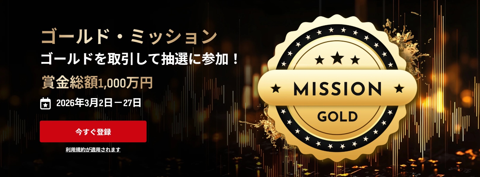 「ゴールドミッション」は、期間中にゴールド(XAUUSD)を一定量取引された方の中から、抽選で50名様に総額1,000万円の賞金が当たるビッグキャンペーンです。