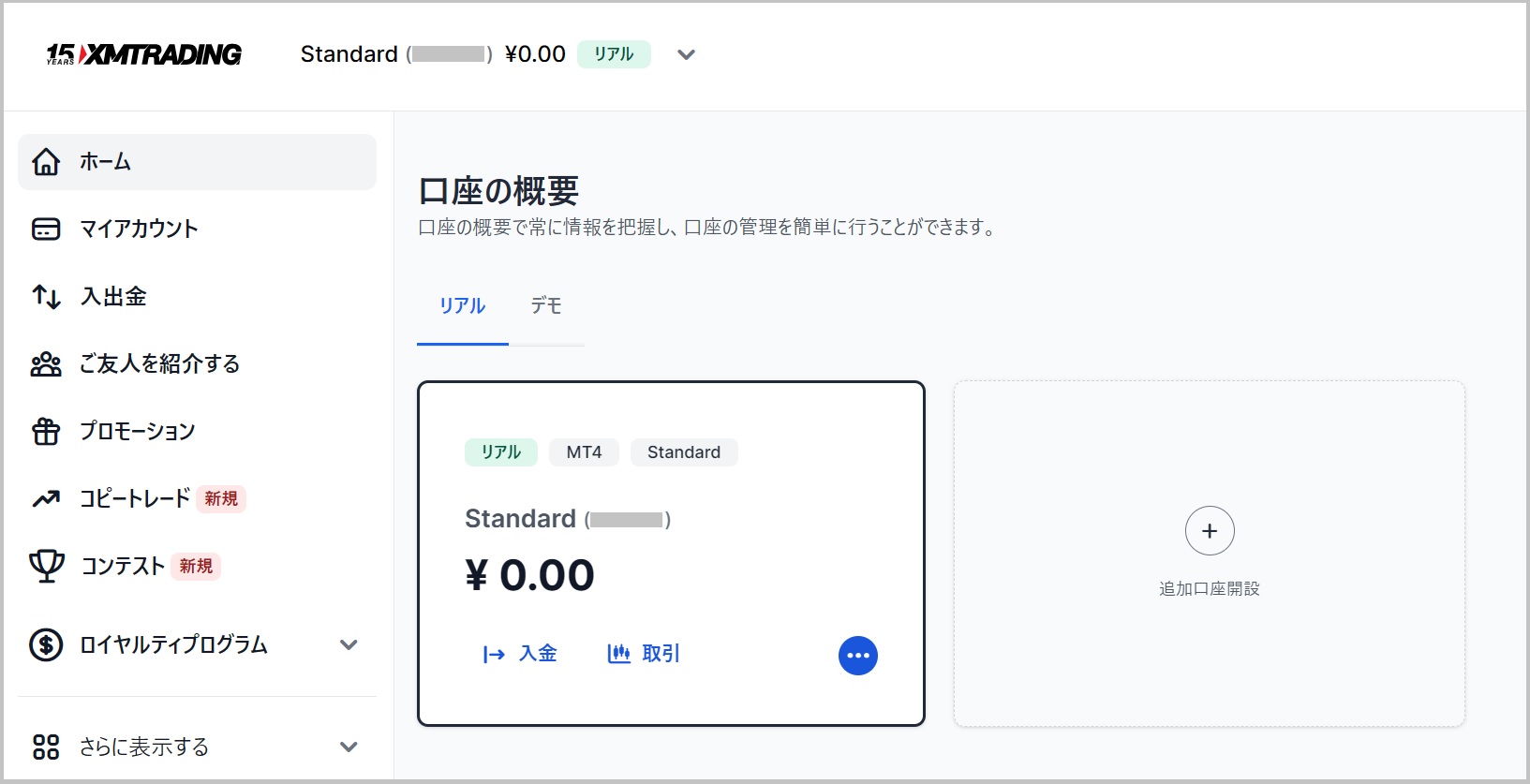 そのため、弊社のキャッシュバック口座を開設するには、XMTradingの会員ページより追加で口座を開設する必要があります。