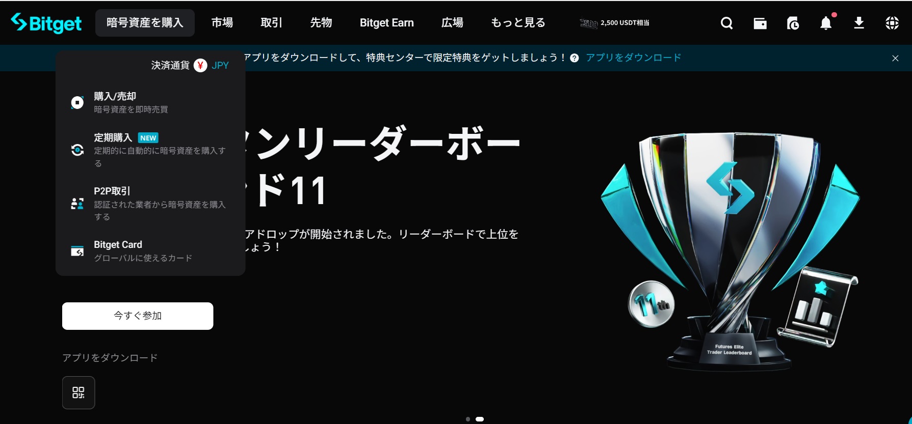 | P2P取引 | Bitgetのプラットフォームでユーザー同士で暗号資産を売却する方法 日本円への換金も可能 | 即時~数分 | 無料 |