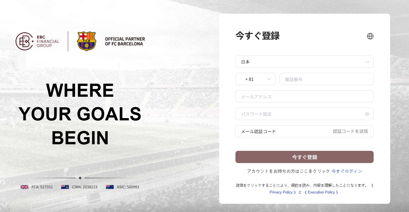 まずは以下のリンクボタンをクリックし、EBC Financial Groupの口座開設ページを開きます。