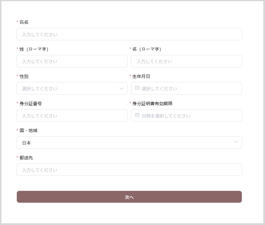 次に「氏名」、「性別」、「生年月日」などの個人情報を入力し「次へ」をクリックします。