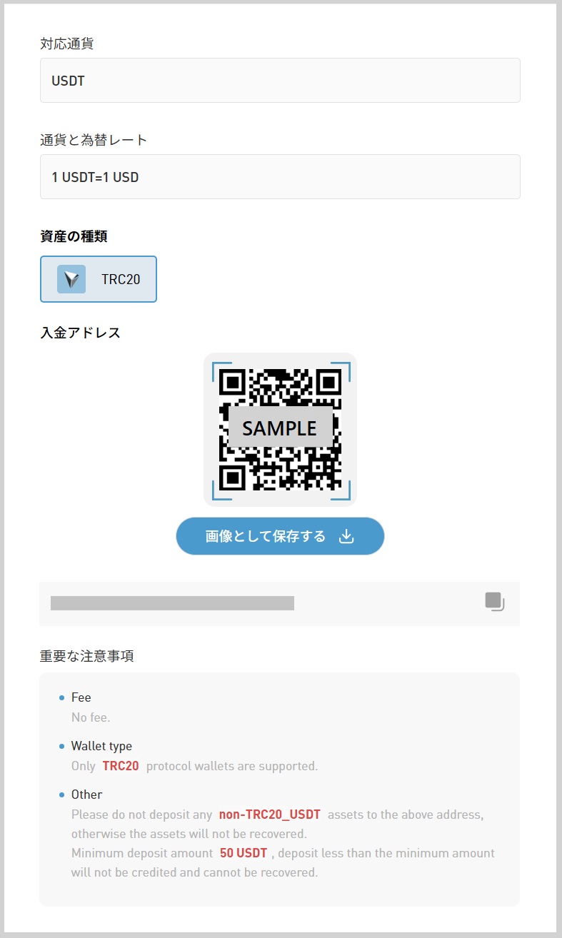 | 暗号通貨 | USDT | 50USDT相当額 | 無料 |