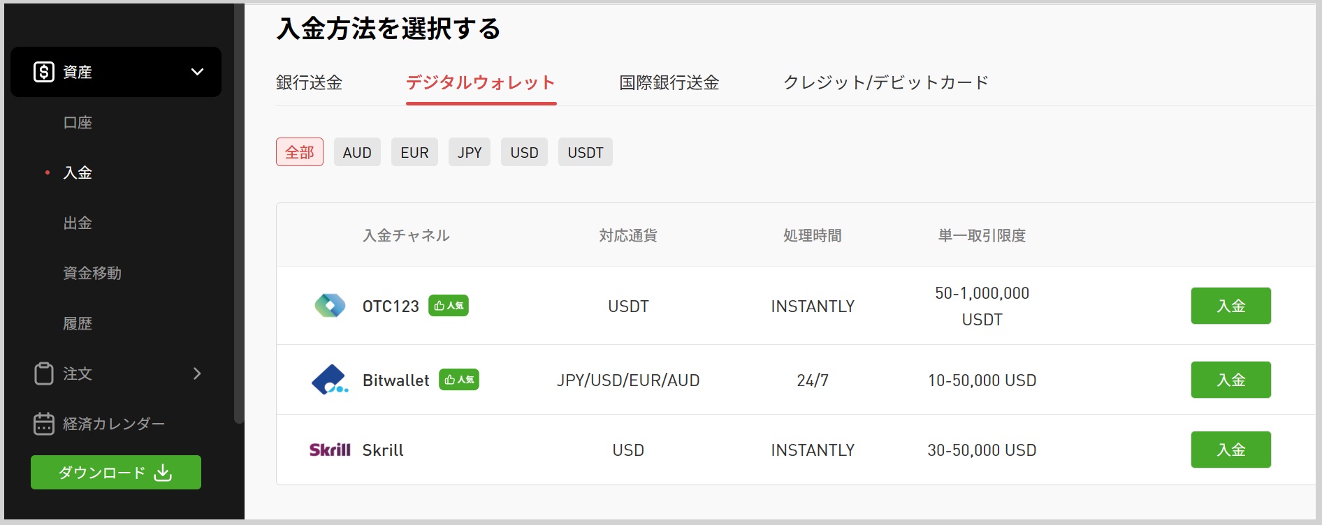 ここからは、日本国内から主に利用されている入金方法について、詳しい手順を解説していきます。