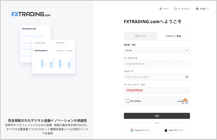 ここでは、弊社のサイトから新規でFXTRADINGのキャッシュバック口座を開設する手順と、弊社のアカウント登録を行う手順をご紹介します。