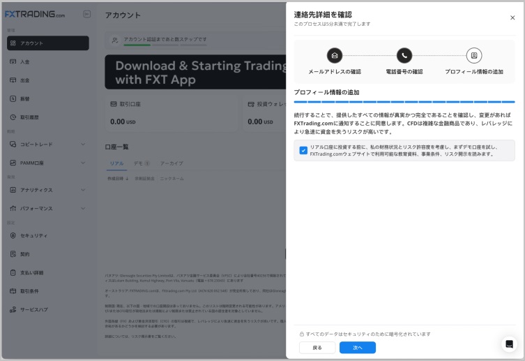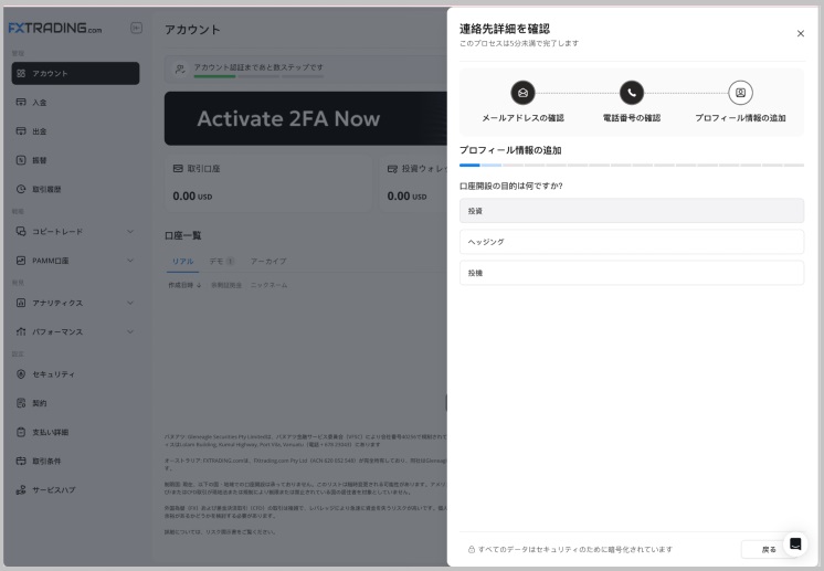 以上、FXTRADINGのキャッシュバック口座開設手順と、弊社のアカウント登録についてご説明しました。