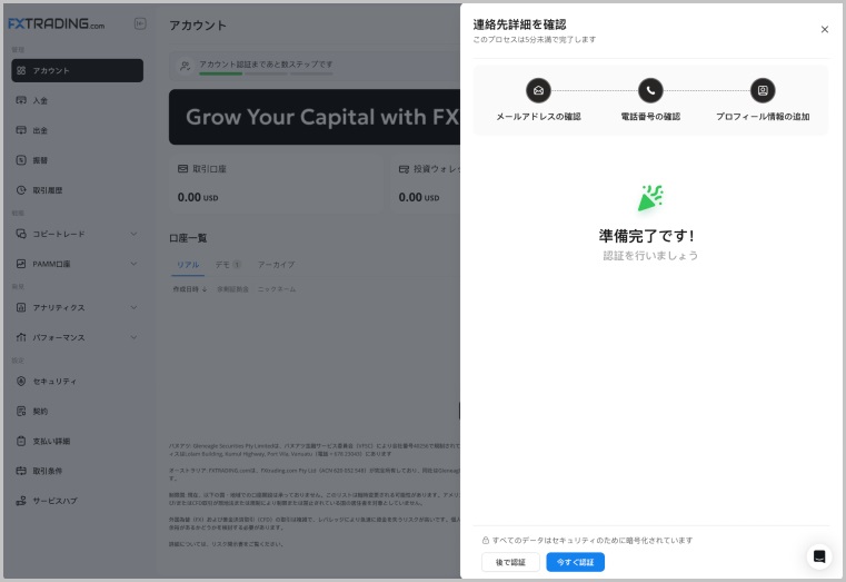 FXTRADINGによる口座の認証は、通常24時間ほどで完了します。
