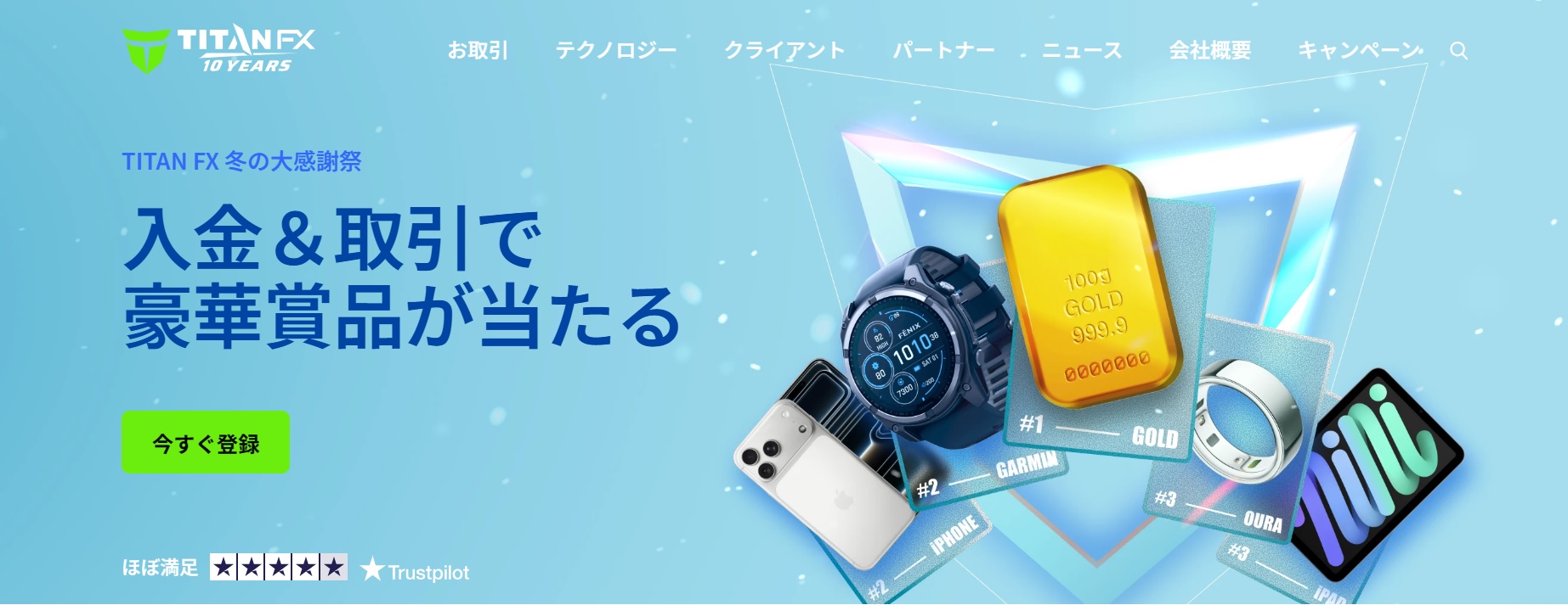 TitanFXでは現在、純金やiPhone17などの豪華賞品が当たる「TitanFX 冬の大感謝祭」を開催しています。