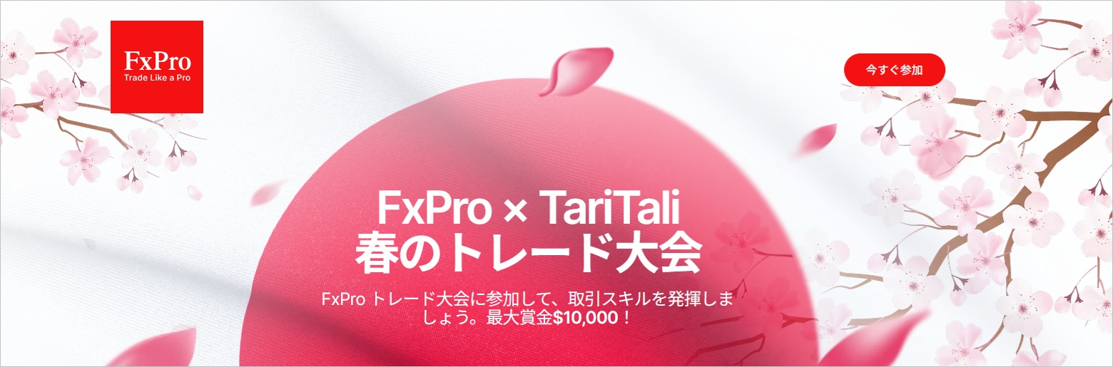 FxProでは現在、TariTaliとのタイアップ企画となる「最大賞金 $10,000!春のトレード大会 2026」を開催しています。