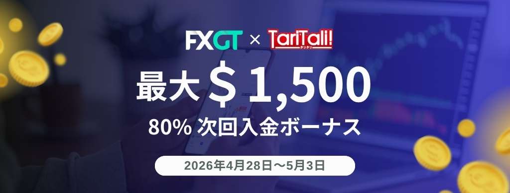 以上、FXGT × TariTali 80%次回入金ボーナスキャンペーン開催のお知らせでした。