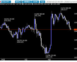 11月第二週、9日のロンドンタイムからNYタイムへと移行しようとした時間帯に突然ファイザーの新型コロナウイルスワクチンが治験で9割の効果を確認したといったニュースがヘッドラインを走ったことから、株も為替も猛烈なリスクオン・・・