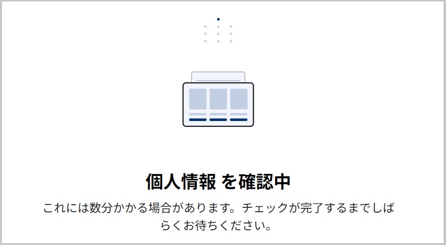個人情報の確認は、審査状況にもよりますが数分で完了します。