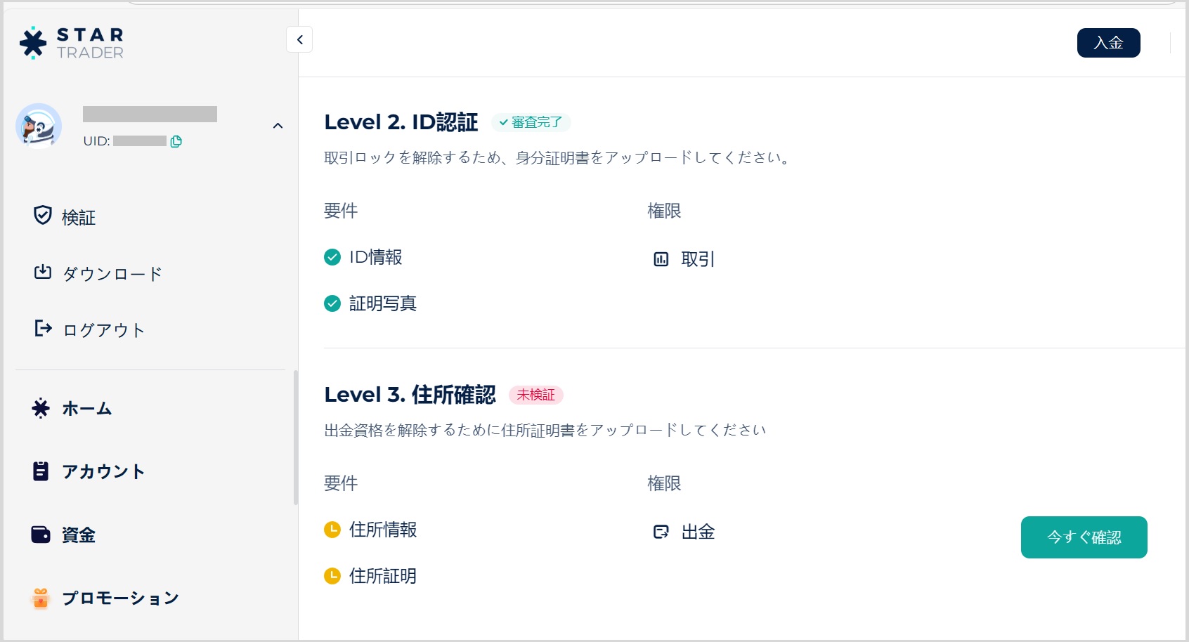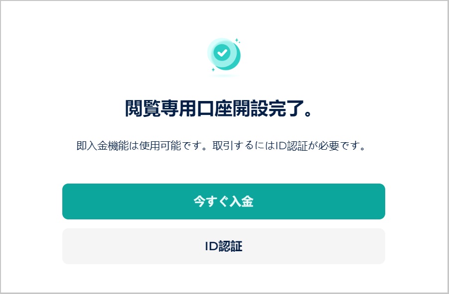 ここまで完了すると、入金・取引・出金のすべてが可能となり、取引を開始できる状態になります。