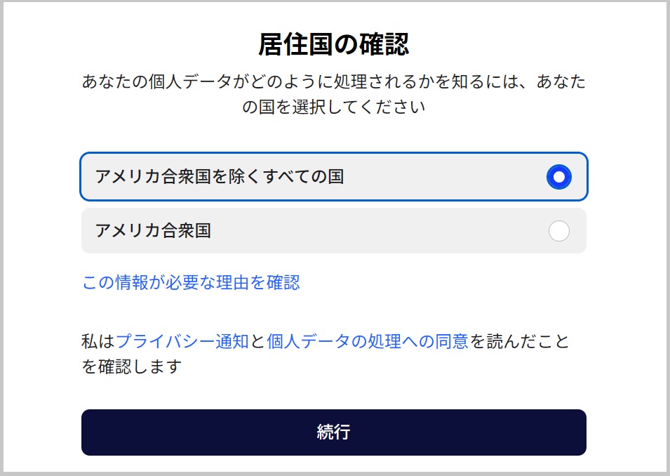 これは、規制対象かどうかを確認するための質問になりますので、どちらかにチェックを入れ「続行」をクリックします。