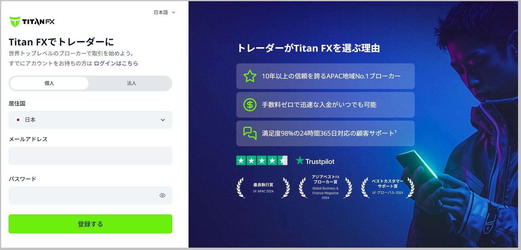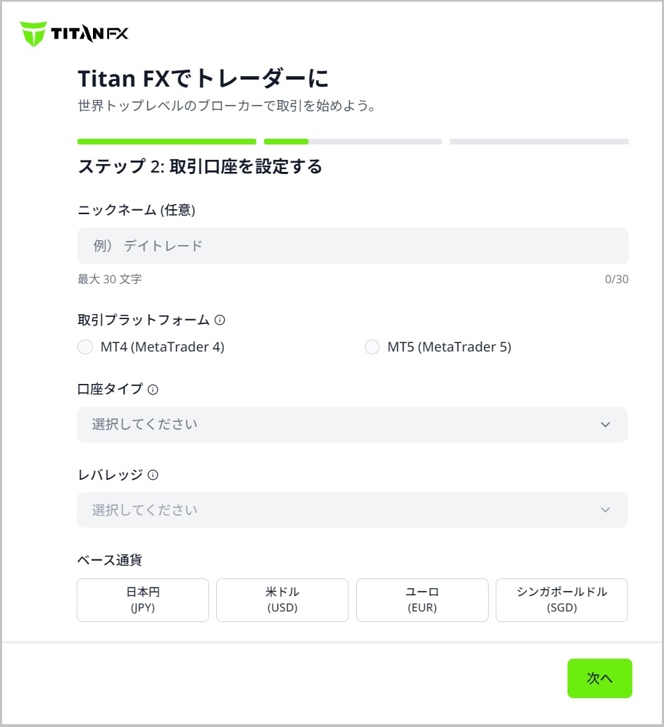 まずは以下のリンクボタンをクリックし、TitanFXの口座開設ページを開きます。