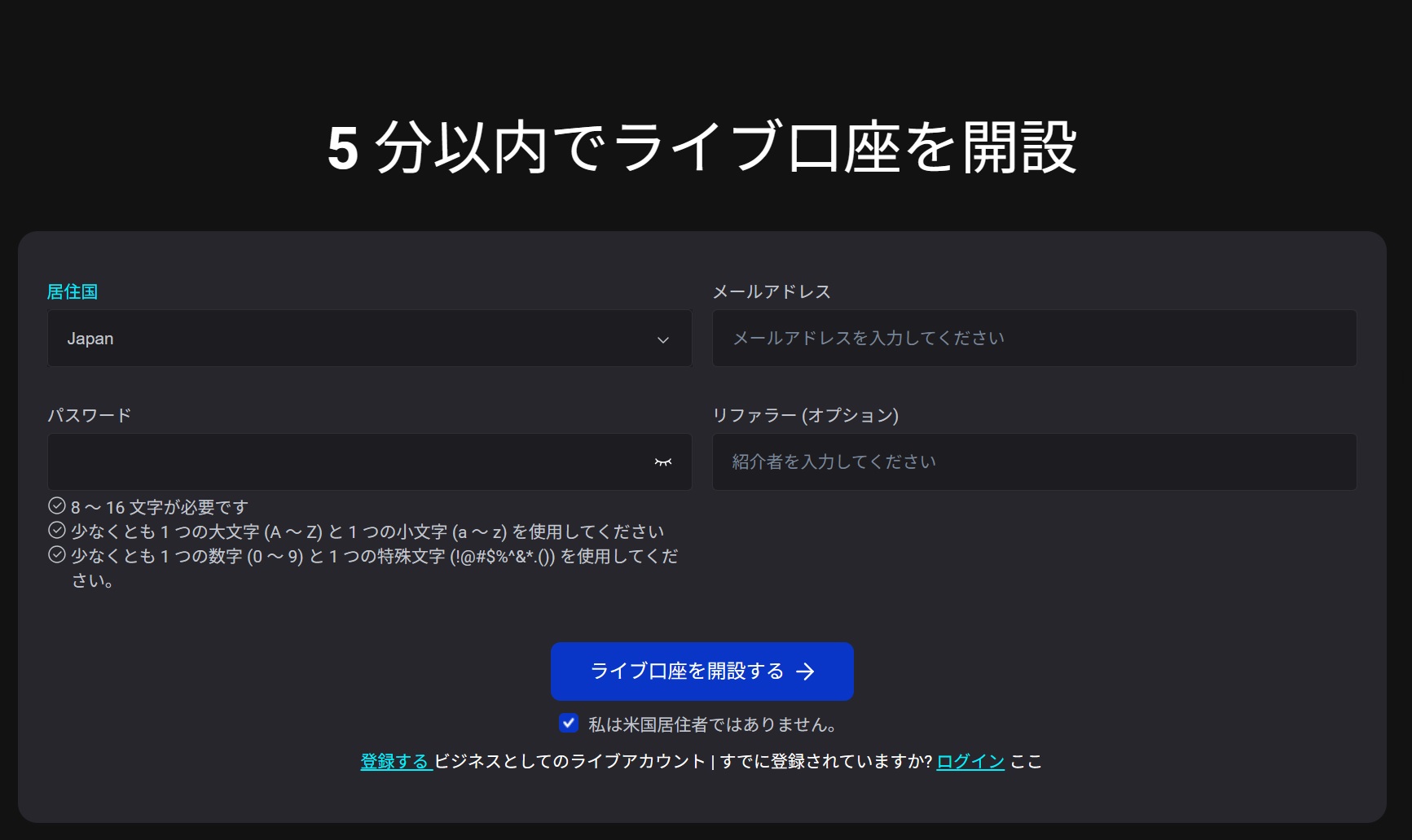 まずは、以下のリンクボタンをクリックし、VTmarketsの口座開設ページを開きます。