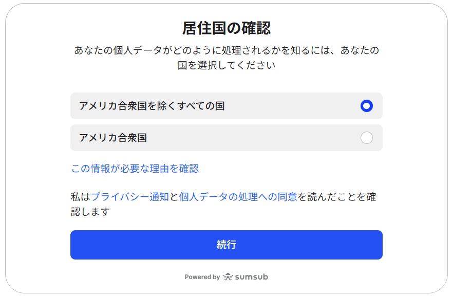 米国居住者かどうかで、適用されるプライバシー法が異なるため、法令遵守の目的でこの質問が設けられています。