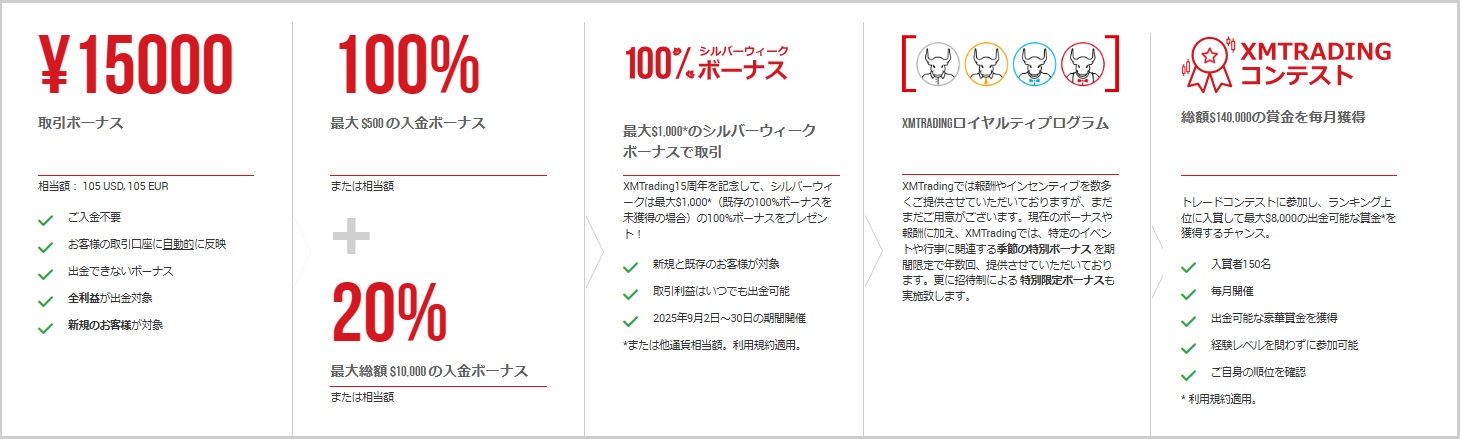 - 口座開設ボーナスおよび入金ボーナスは対象外